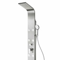 Душевая панельGalaxy компанииAquanet позволит проводить оздоровительные процедуры в домашних условиях. Эффектный внешний вид и практичность эксплуатации придает изделию из нержавеющей стали матовая хромированная поверхность. Функциональность обеспечивают тропический и верхний каскадный душ, ручная лейка, работающая в трех режимах, и шесть форсунок для массажа спины. Пластиковый гибкий шланг не перекручивается, что помогает избежать заломов и быстрого износа.