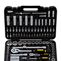 Набор инструментов Berger BG108-1214 содержит 108 предметов, необходимых для ремонта автомобиля. Компактный стильный чёрный кейс из пластика с ручкой для переноски и надёжными защёлками как нельзя лучше подходит для использования в поездках. Каждому инструменту в нём предназначено своё отдельное место, ничего не будет болтаться, греметь и теряться. В наборе есть биты, адаптер для бит, торцевые и свечные головки, головки со вставкой, удлинители, шестигранные ключи и многое другое.