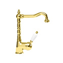 Назначение: для умывальника • Конструкция: однорычажный • Монтаж: горизонтальный • Клапан: керамический • Материал: латунь, покрытие - золото • Подводка: гибкая • Монтажные отверстия: 1 отверстие • Форма излива: традиционная • Душевая лейка в комплекте: нет • Аэратор: есть • Донный клапан в комплекте: есть