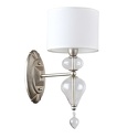 Бра стиля модерн для гостиной, кабинета или спальни имеет размеры 160x370x250 мм. Арматура светильника окрашена в серебрянный цвет. Лампы в комплекте - отсутствуют. В светильнике применяются лампы накаливания или светодиодная LED-лампа. Цвет плафонов - белый, с матовой поверхностью. Материал плафонов - текстиль. Класс электробезопасности - I, степень пылевлагозащиты (IP) - 20. Максимальная мощность лампы (Вт) - 40. Светильник размещается на стене.