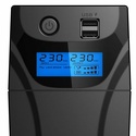 Интерактивный, 850 ВА / 480 Вт, количество выходных разъемов: 2 (2 с питанием от батареи), время работы: 1 мин, USB, защита локальной сети, защита телефонной линии