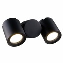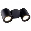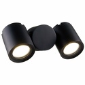 Бра стиля техно для гостиной, кабинета или спальни имеет размеры 75x218x103 мм. Арматура светильника окрашена в черный цвет. Лампы в комплекте - отсутствуют. В светильнике применяются галогеновая лампа или светодиодная LED-лампа. Цвет плафонов - черный, с матовой поверхностью. Материал плафонов - металл. Класс электробезопасности - I, степень пылевлагозащиты (IP) - 54. Максимальная мощность лампы (Вт) - 50. Светильник размещается на стене.