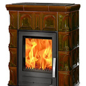 Пристенная печь-камин, отапливаемый объем 140 куб.м, мощность 7 кВт, закрытого типа, древесное топливо, система "чистое стекло"