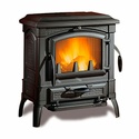 Пристенная печь-камин, отапливаемый объем 201 куб.м, мощность 7 кВт, закрытого типа, древесное топливо, система "чистое стекло"