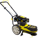 Двигатель: бензиновый, тип триммера: колесный, Мощность ДВС: 4 л.с., количество тактов двигателя: четырехтактный, режущий элемент триммера: леска, ширина скашивания: 60 см, количество колес: двухколесная