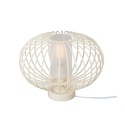 Настольная лампа декоративная стиля лофт для гостиной, кабинета или спальни имеет размеры 300x210 мм. Арматура светильника окрашена в белый цвет. Лампы в комплекте - отсутствуют. В светильнике применяются лампы накаливания или светодиодная LED-лампа. Цвет плафонов - белый, с матовой поверхностью. Материал плафонов - текстиль. Класс электробезопасности - II, степень пылевлагозащиты (IP) - 20. Максимальная мощность лампы (Вт) - 60. Светильник размещается на столе.